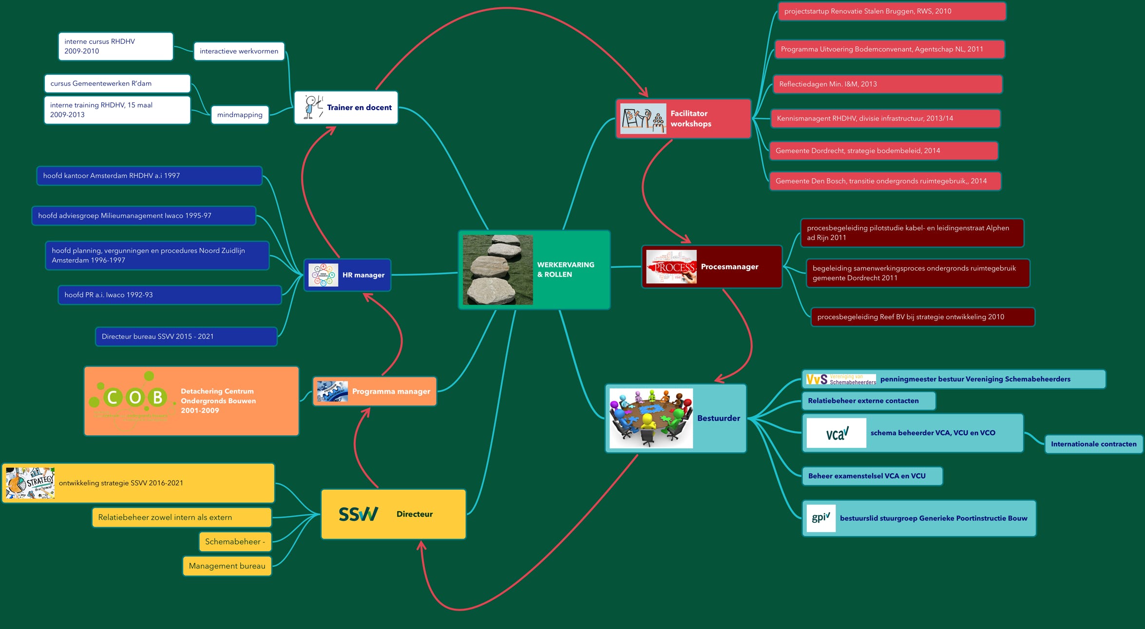 De rode draad in mijn werkervaring en type rollen die ik heb ingevuld is samenwerking door verbindingen te leggen die niet vanzelfsprekend zijn. Ik ben een creatieve initiatiefnemer met ervaring in een ingenieursomgeving. Mijn sporen heb ik verdiend op het vlak van bestuur, management, alliantievorming, fondswerving, kennismanagement, publiek private samenwerking en interactieve ofwel creatieve werkvormen. Hierbij maak ik goed gebruik van mijn analytische, beleidsmatige en bestuurlijke kwaliteiten. Ik werk creatief en kijk voorbij de gebaande paden.